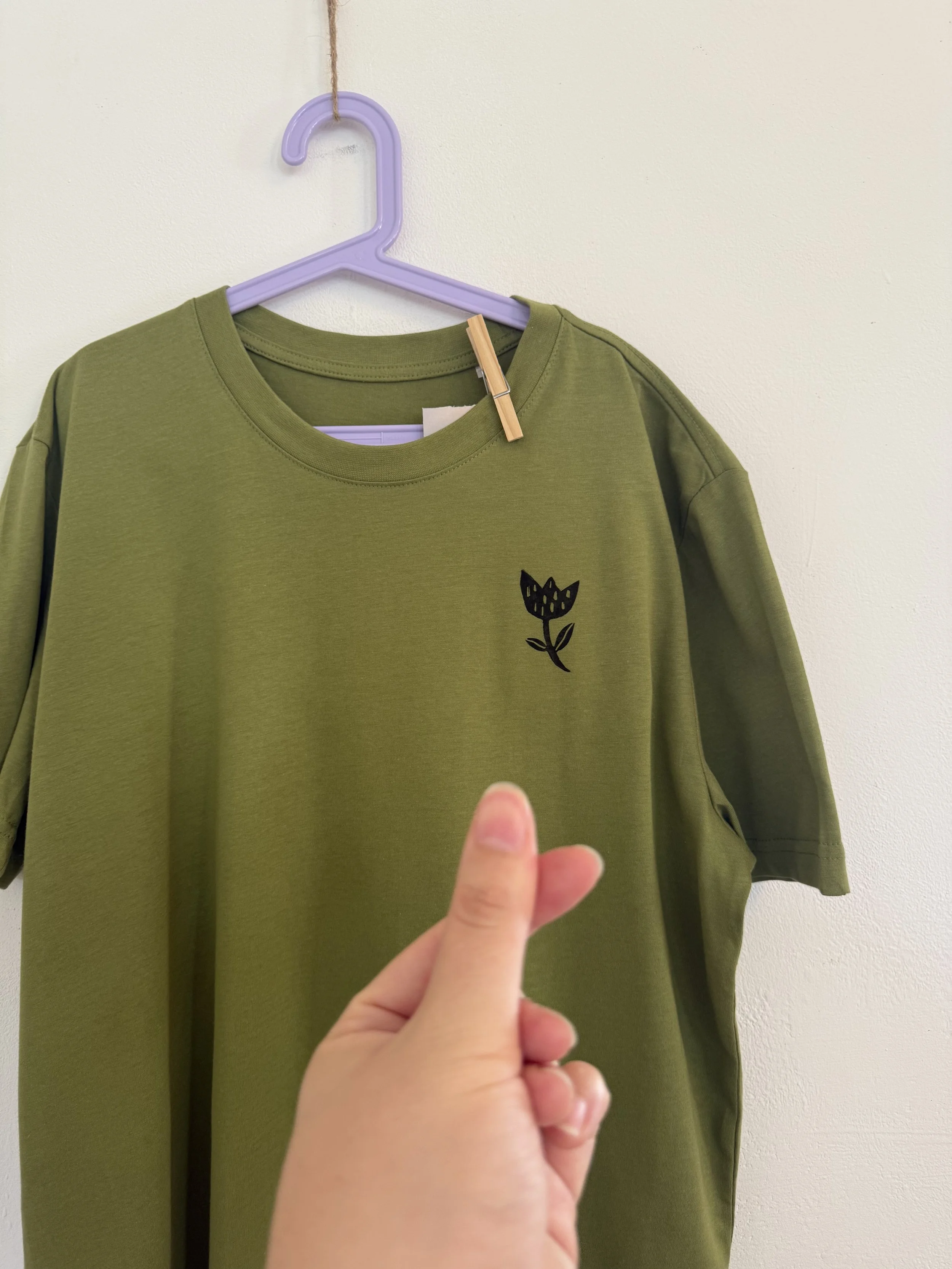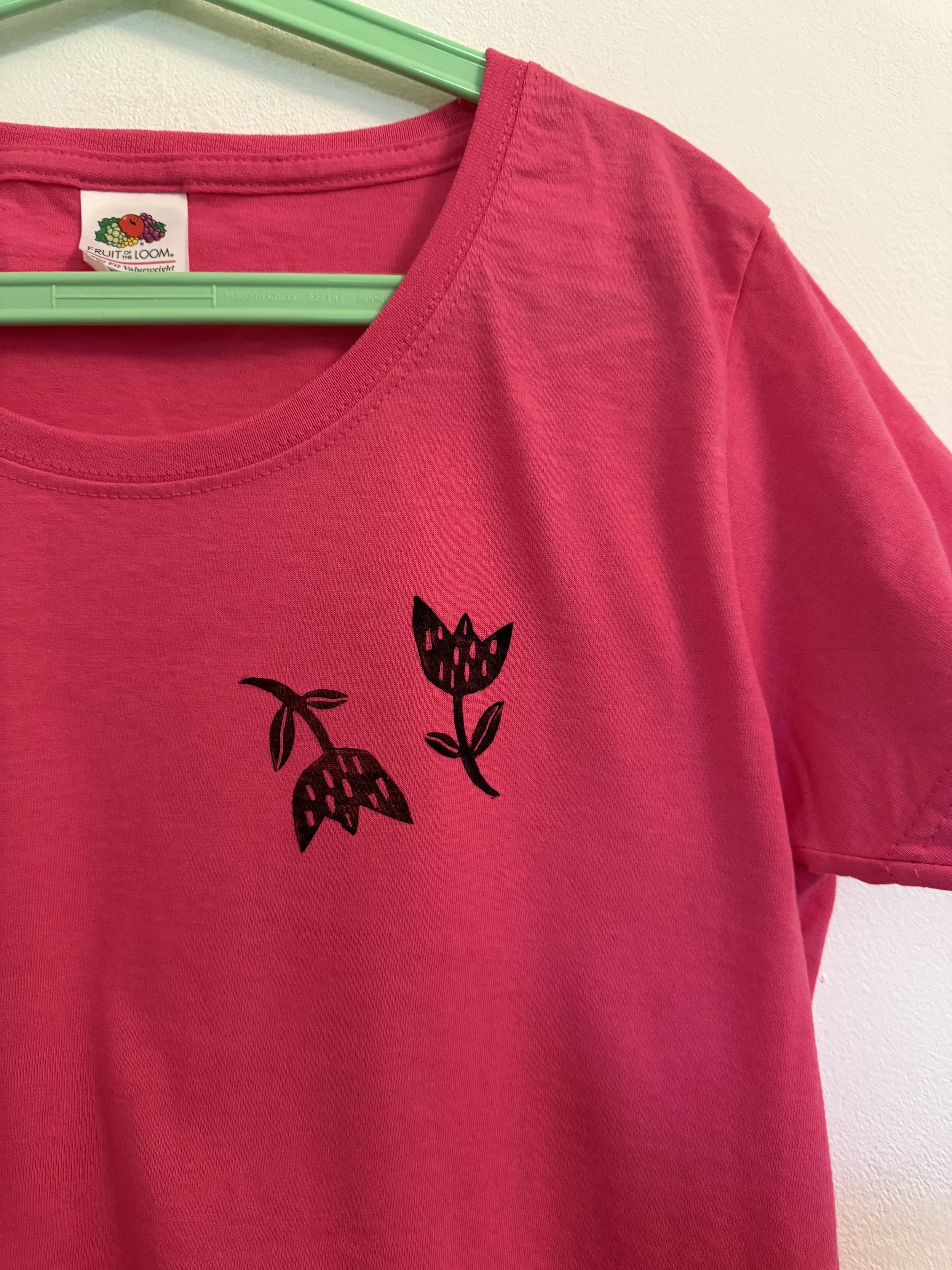 Création de motif et impression à la main par sérigraphie ou linogravure. J'utilise des encres végétales de ma fabrication, ou des encres à l'eau certifiées (Oekotex/GOTS) . Pour les design qui le nécessitent, je travaille également avec des professionnels de l'impression digitale écologique, avec faible consommation d'eau et encres certifiées.