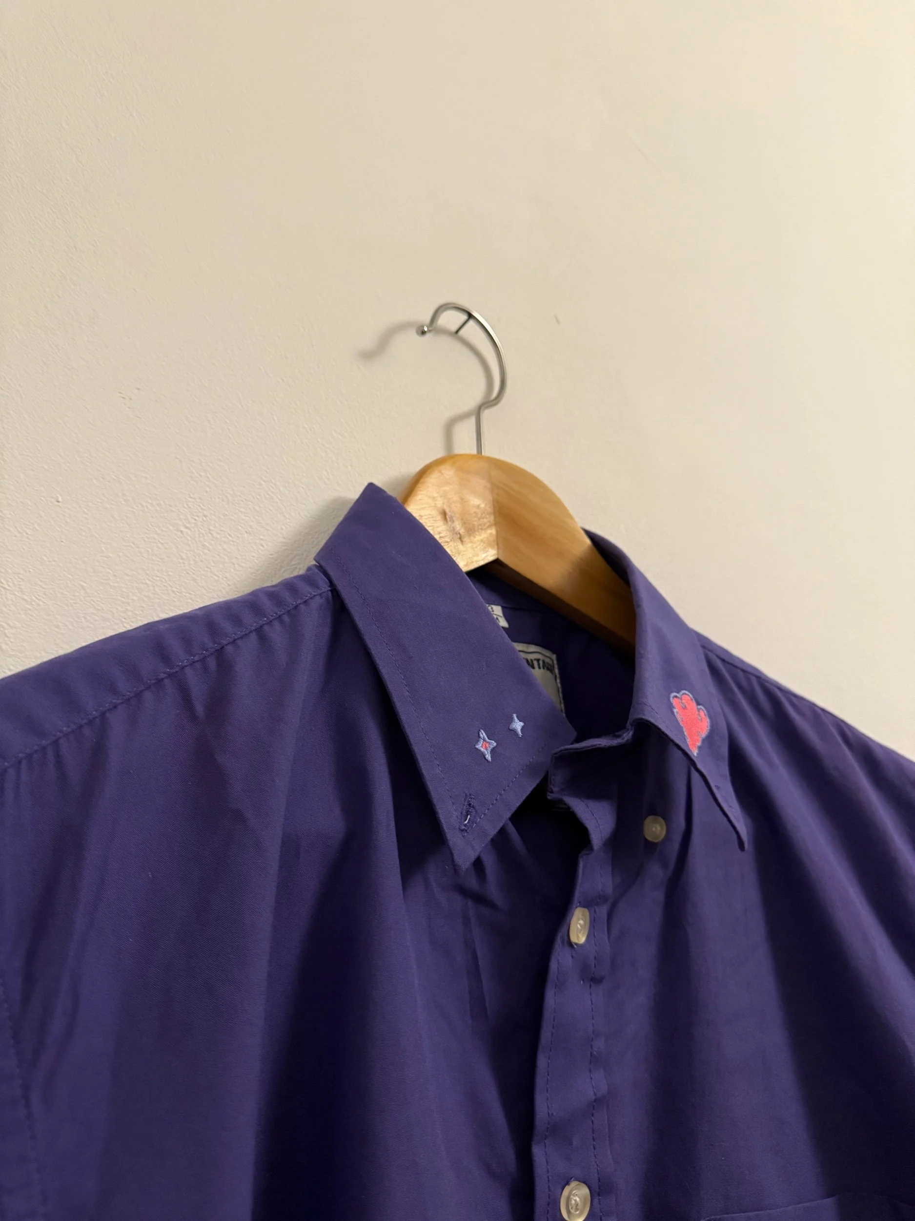 Chemise violette brodée avec amour avec des motifs de nuage et étoiles sur le col, pour les rêveurs et rêveuses !