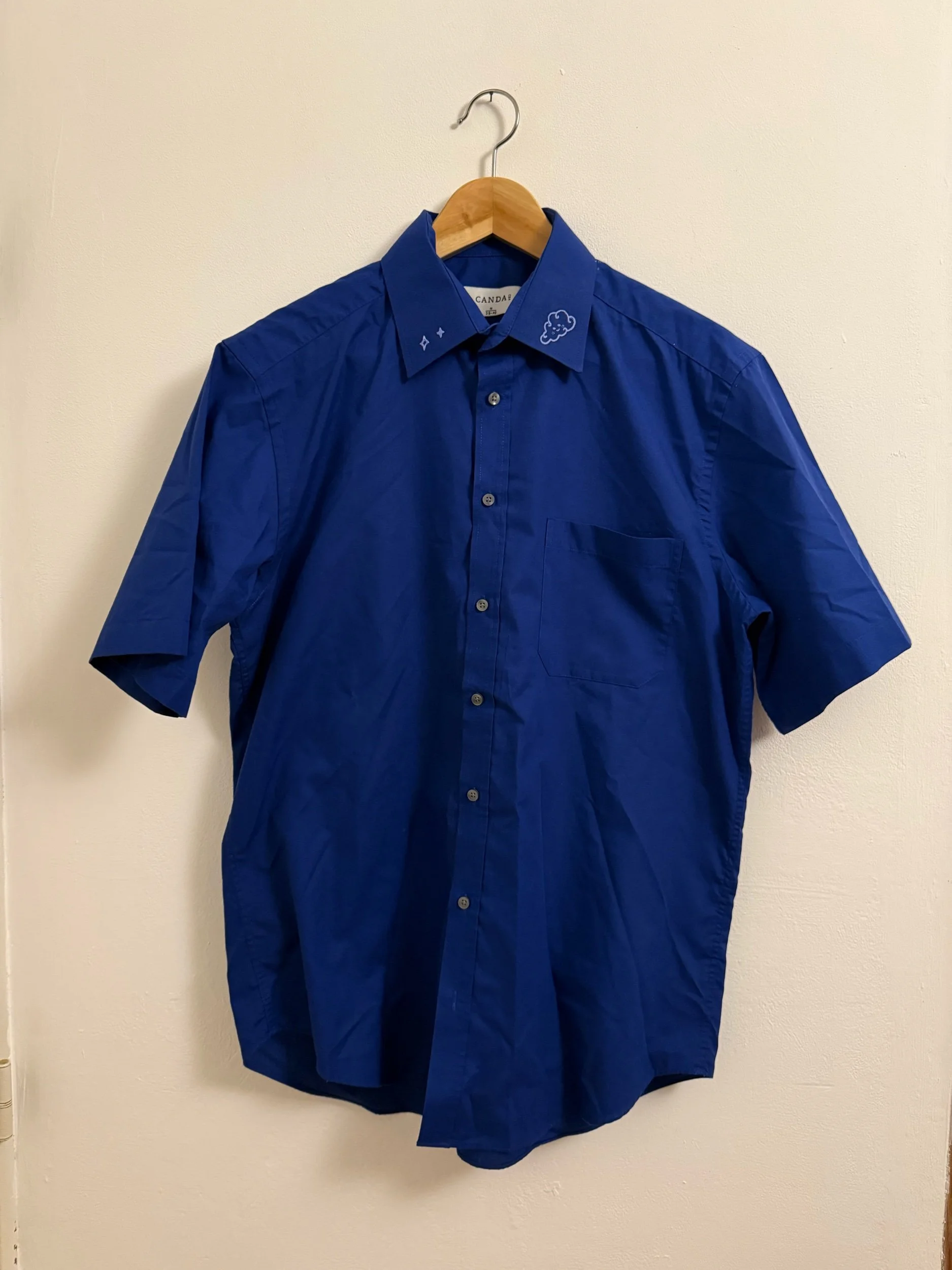 Chemise bleue brodée avec amour avec des motifs de nuage mignon et étoiles, pour les rêveurs et rêveuses ! Taille M.